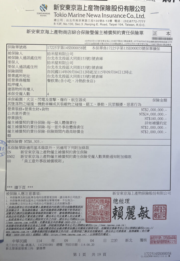 拾米屋產品責任險